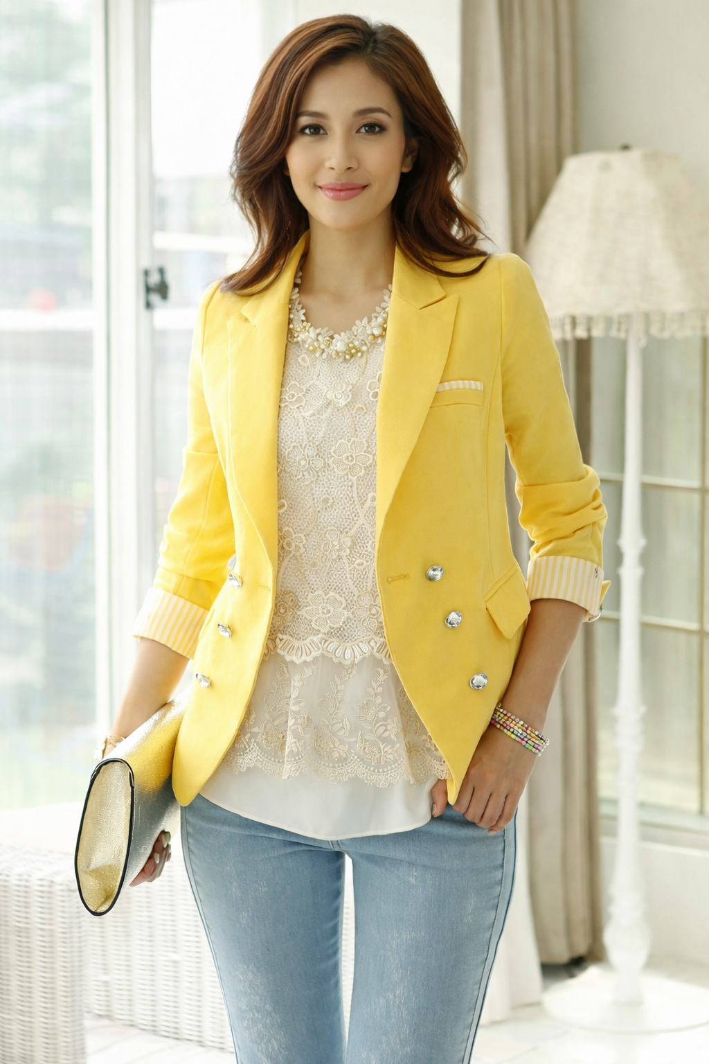…e può essere tranquillamente indossato anche su abiti a tubino o, se colorato vivacemente, su canotta e